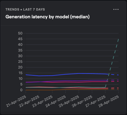 Get alerts when latency exceeds a threshold, or when it spikes for a specific model.